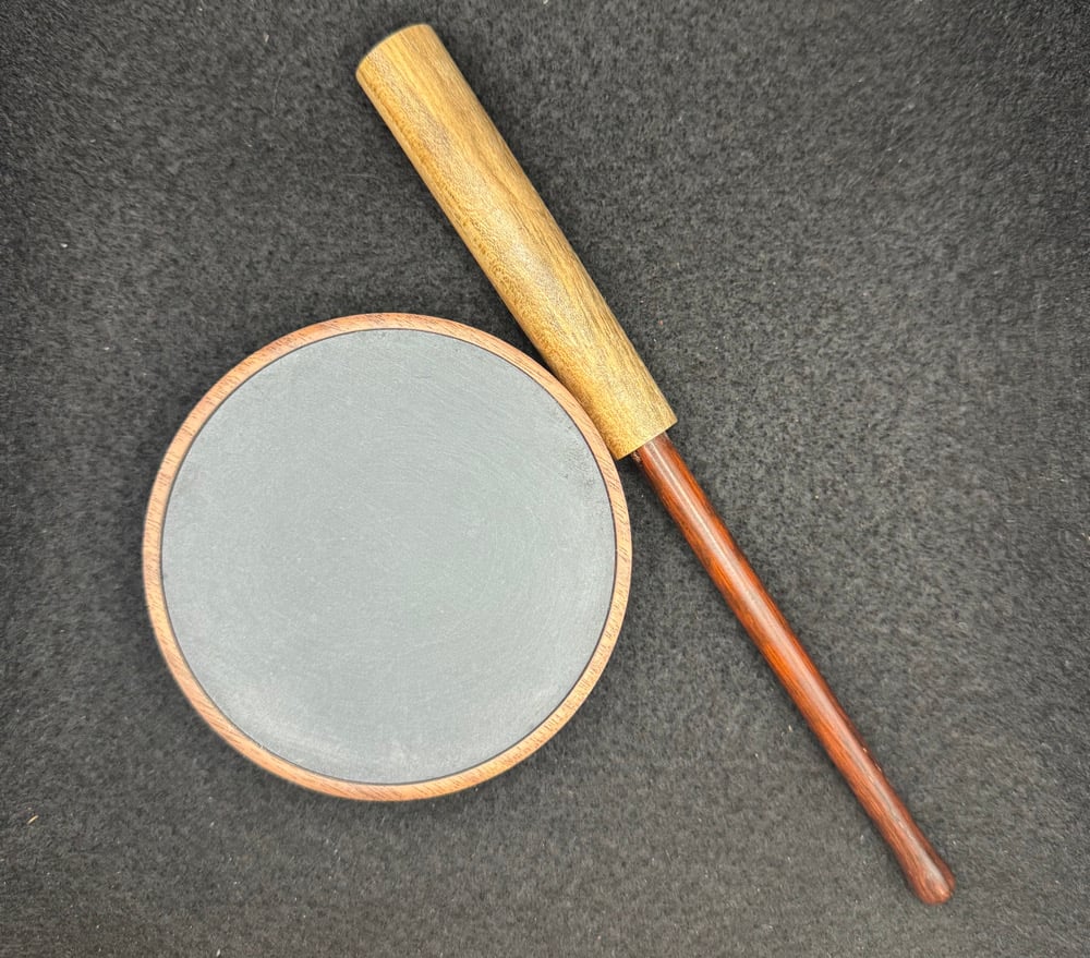 Walnut black slate over glass/ 2 piece maple/ snakewood striker